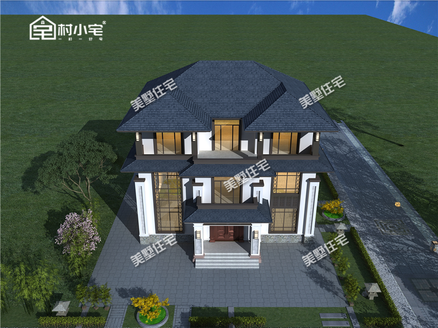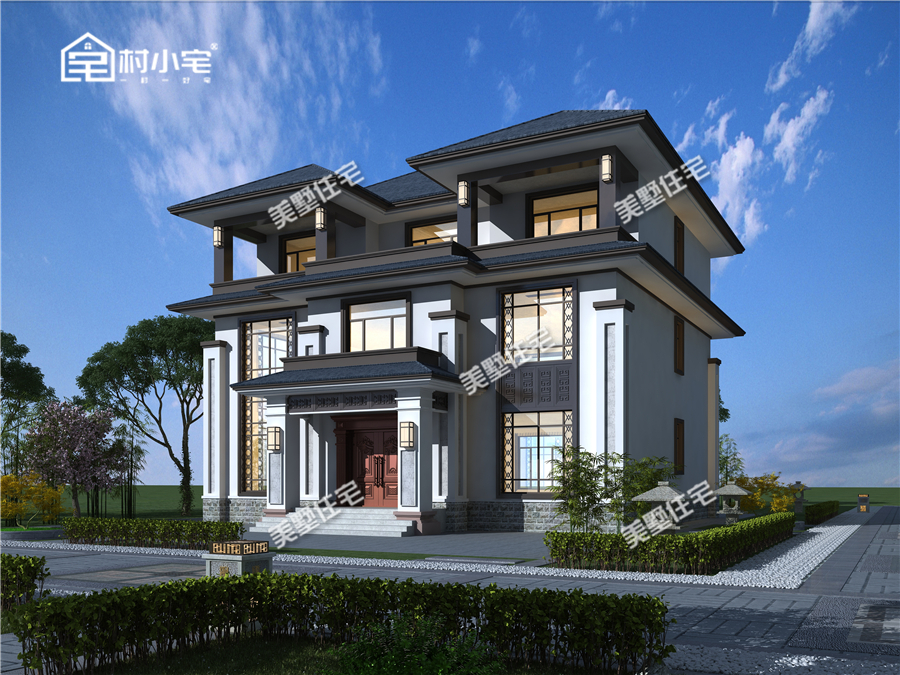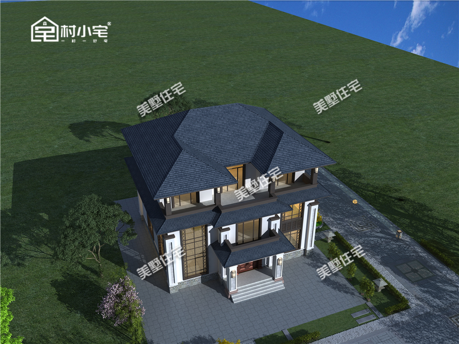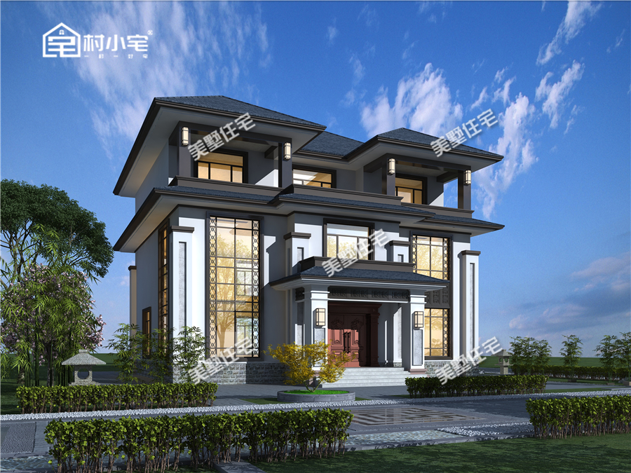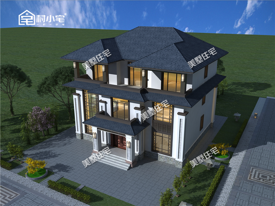 主体造价84-88万内嵌式顶层双露台新中式别墅
