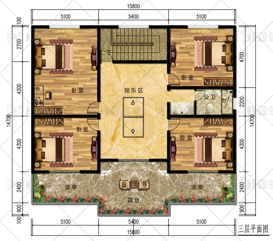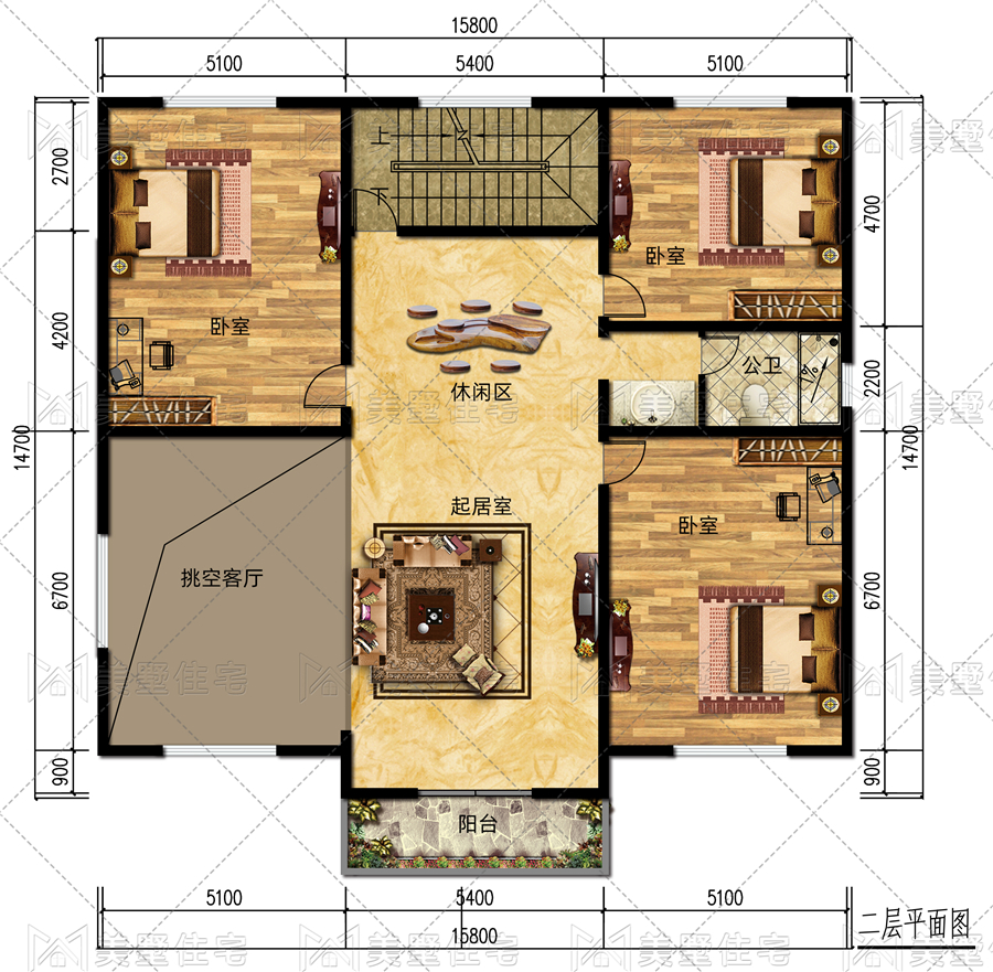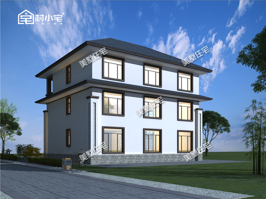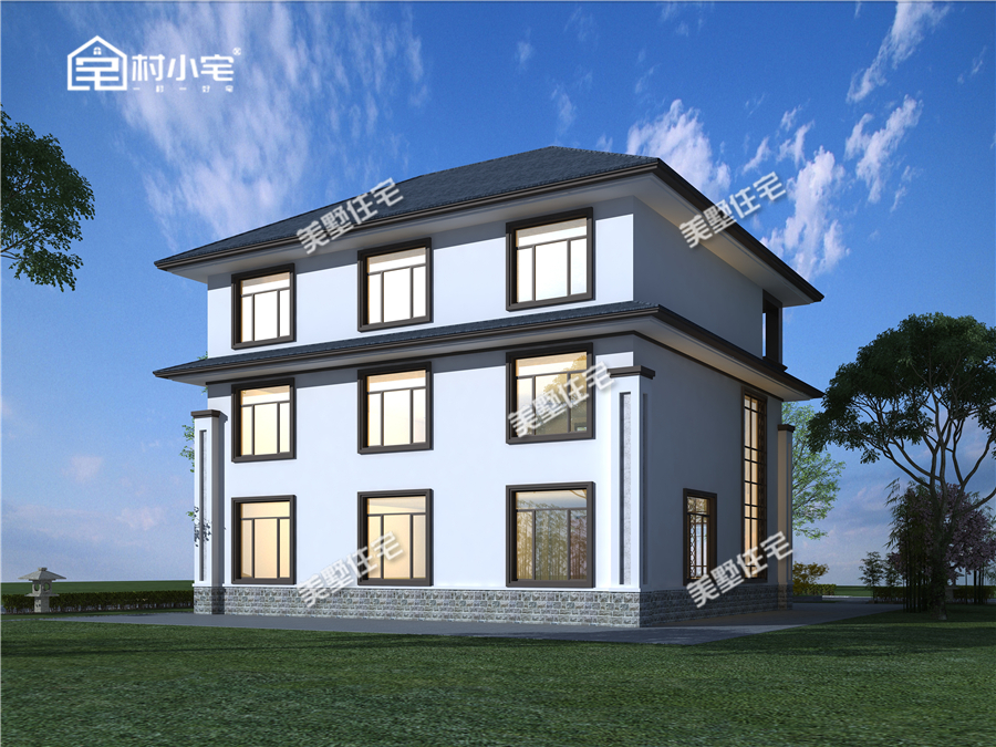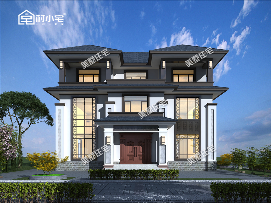 主体造价84-88万内嵌式顶层双露台新中式别墅