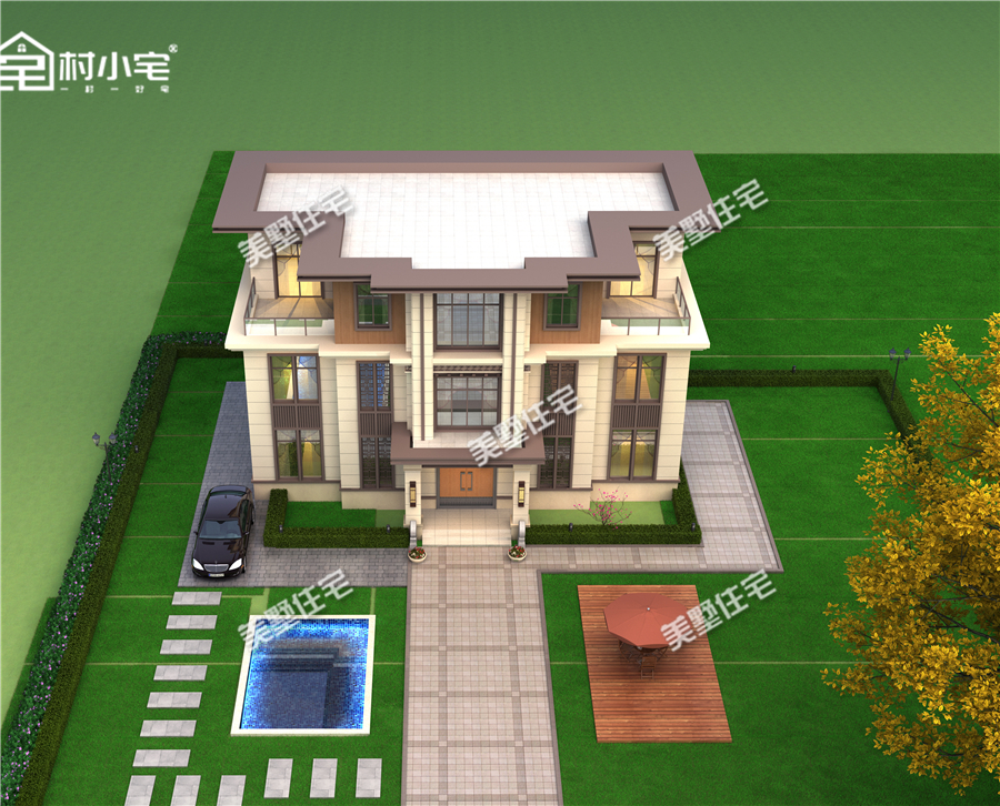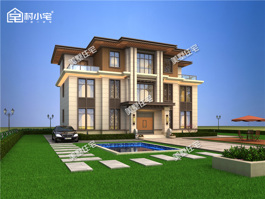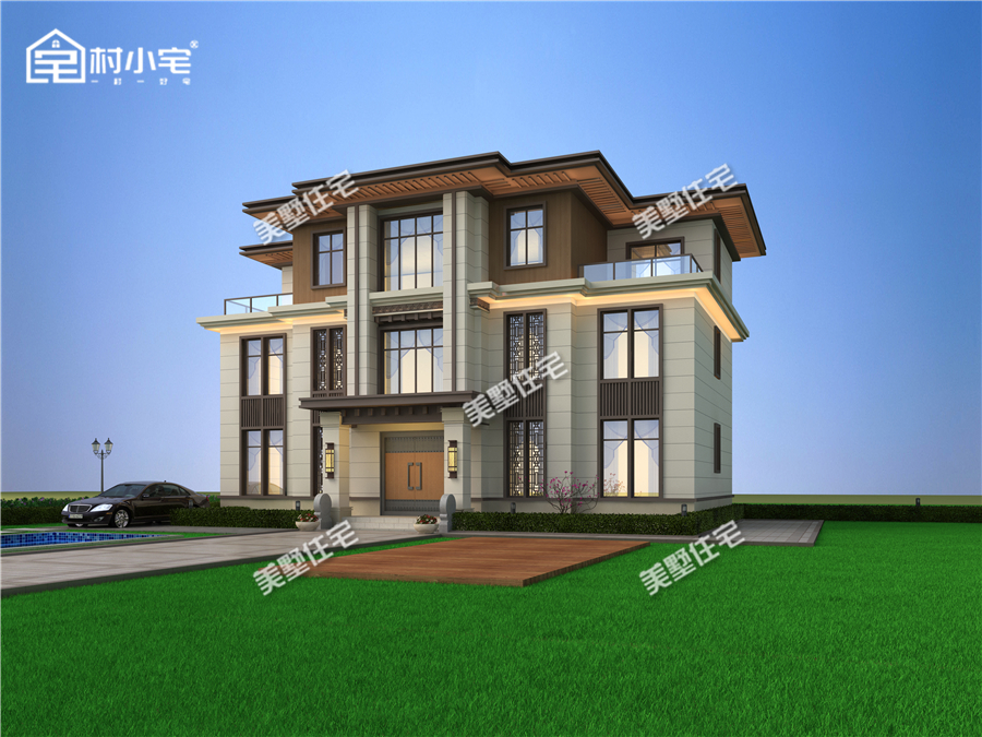 主体造价80-88万玻璃护栏三层传统中式别墅