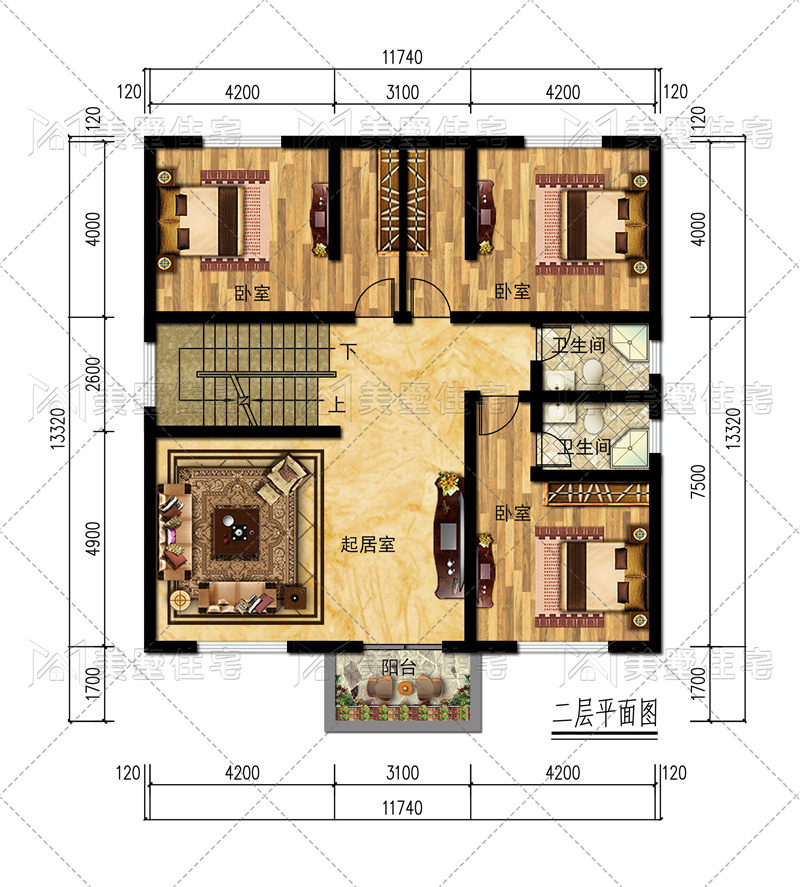 2厅7卧布局经典款简欧别墅,配备娱乐室丰富居家生活,开放式书房对接露台,学习办公有自然相伴!