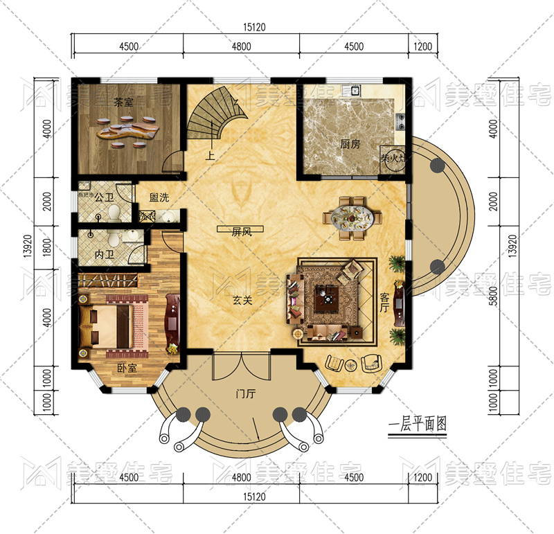 占地尺寸:15.12x13.92米