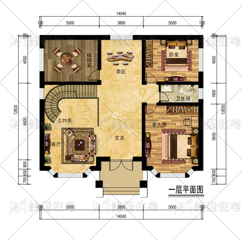 占地尺寸:14.04x12.82米