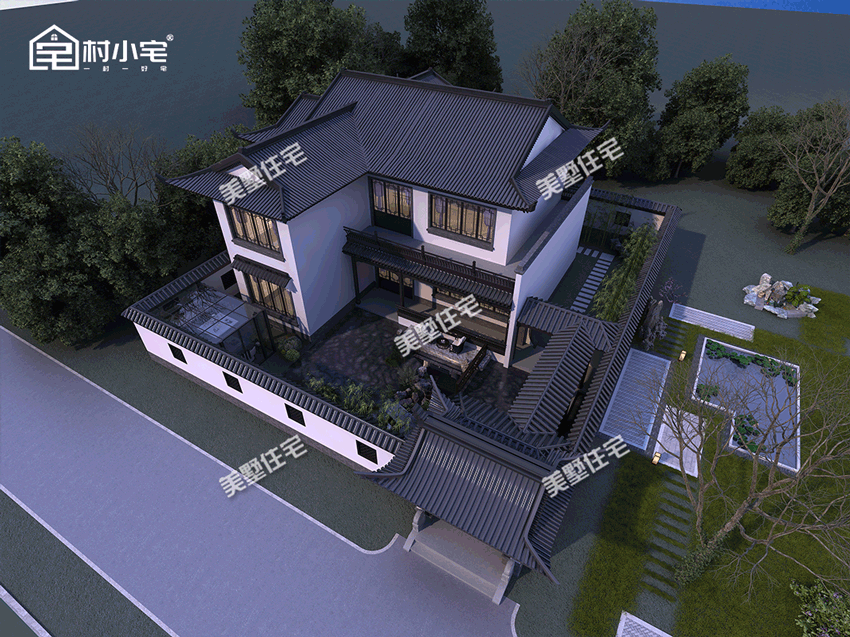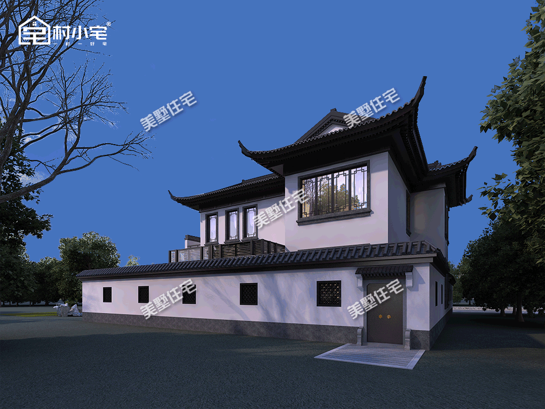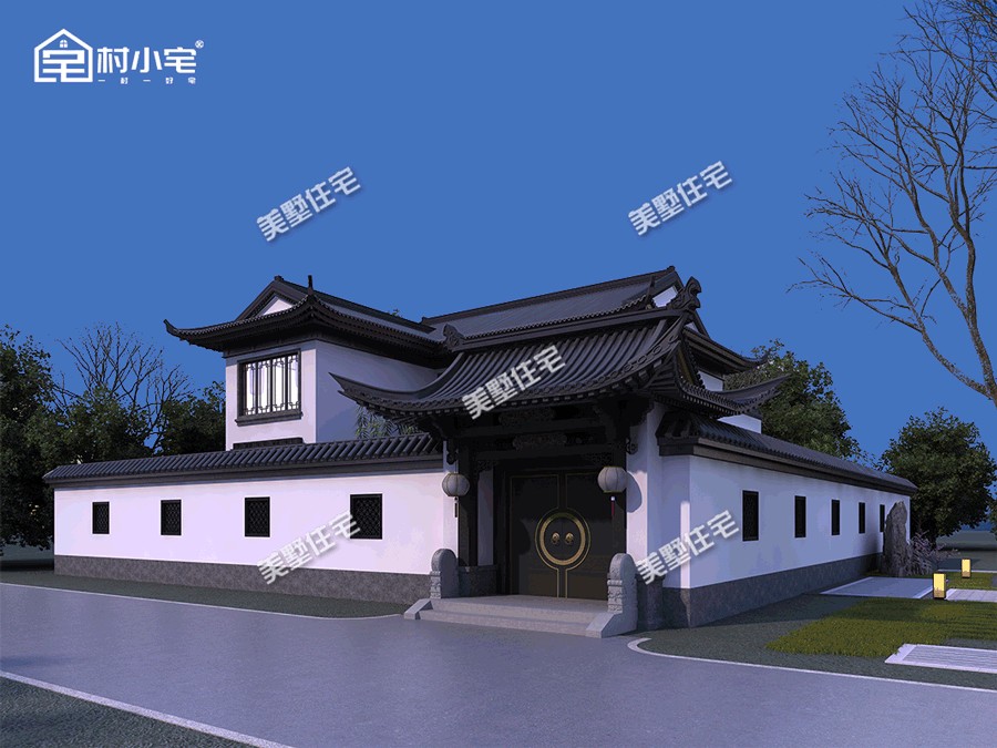 设计连廊连接院门与主体建筑,灵活运用中式元素,增强建筑的中式古典美,便于家人和客人的行走活动。