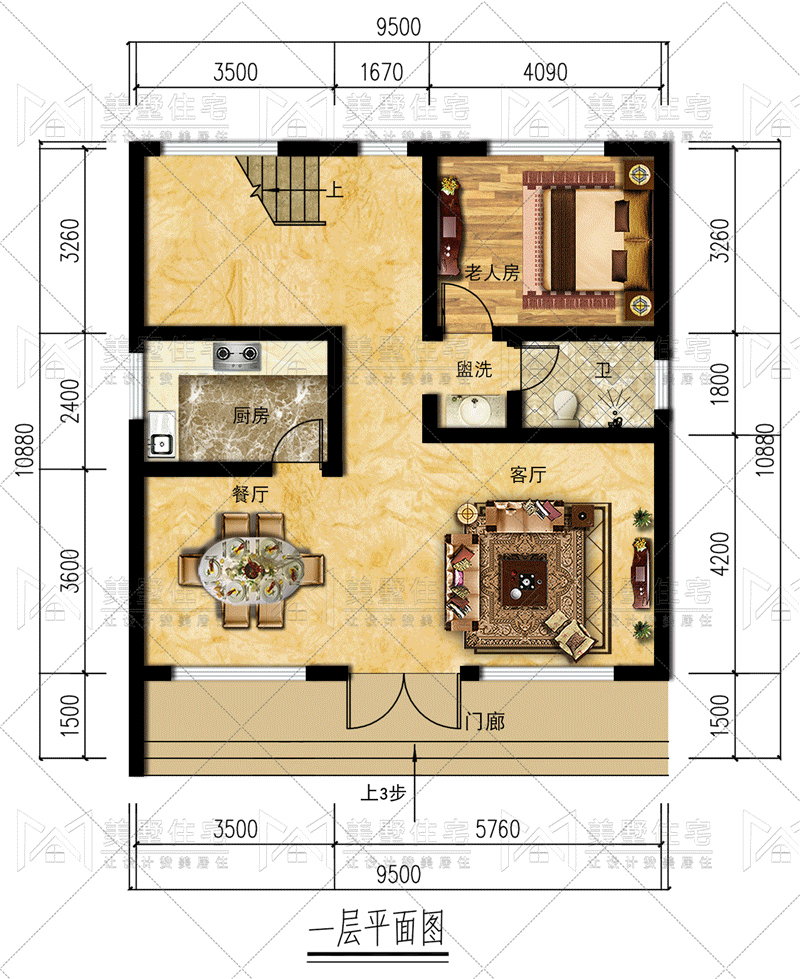 占地尺寸:9.5x10.88米