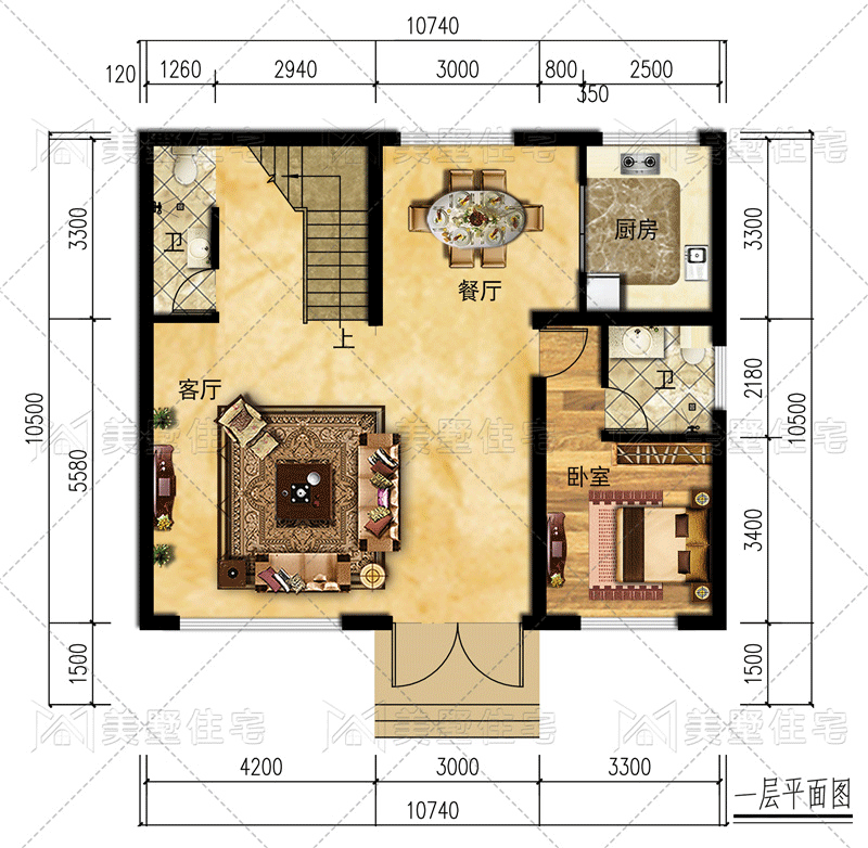 占地尺寸:10.74x10.5米