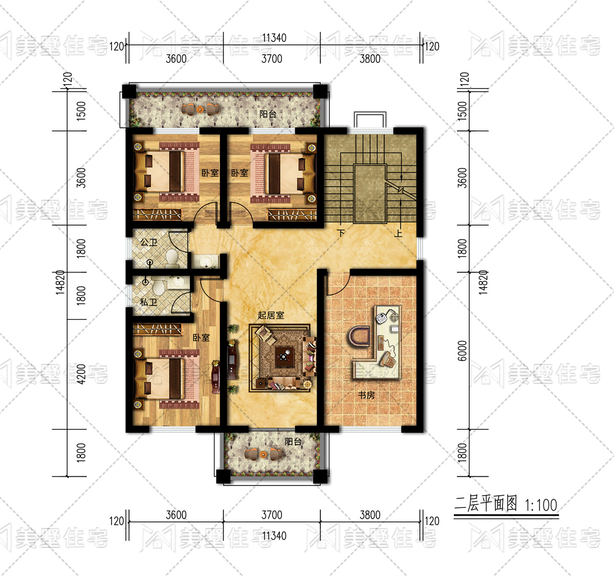 2间卧室+1间公卫,均连接阳台,方便生活起居,避免了上下楼的不便,增强室内的通透、明亮感。